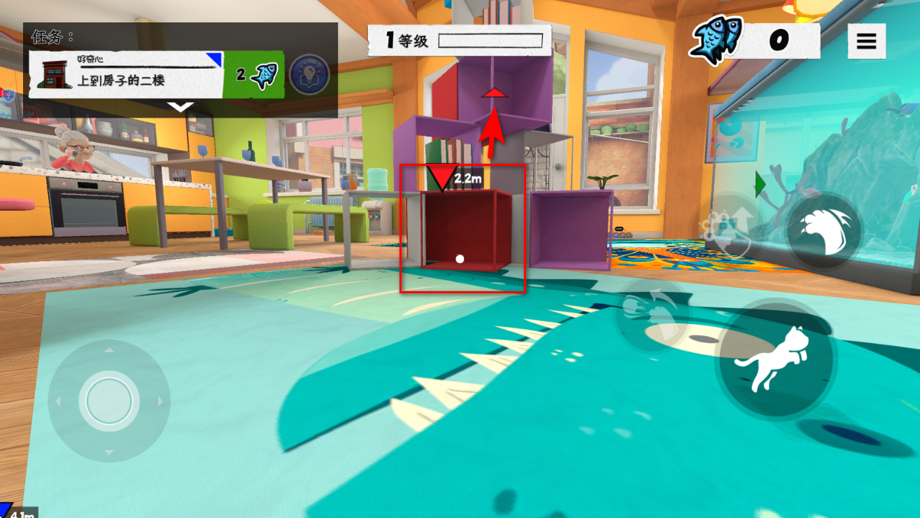 2、接著按照任務(wù)指引,嘗試上到房子的二樓,通過跳躍等操作,利用房子里的柜子等物品,朝著二樓的方向前進。