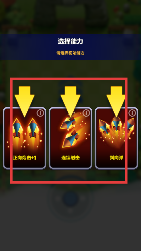 4、消滅特定坦克后,會出現(xiàn)能力選擇界面,有正向炮擊、連續(xù)射擊、斜向彈三種初始能力可選,根據(jù)戰(zhàn)斗喜好挑選,助力后續(xù)地牢戰(zhàn)斗。