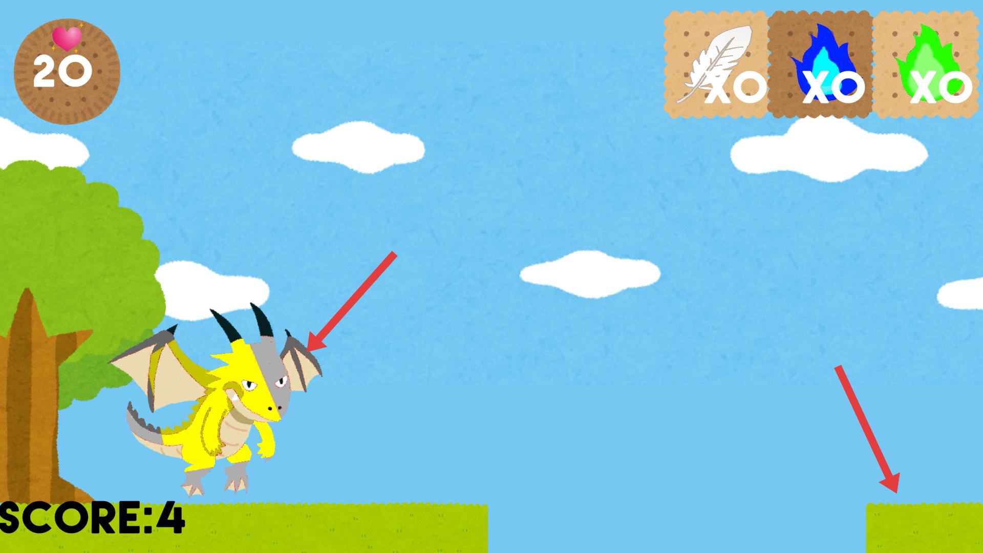 2、游戲過程中操控龍在綠色草地上移動,注意避開障礙物,同時可利用上方的道具,讓龍順利前行,積累分數(shù)。