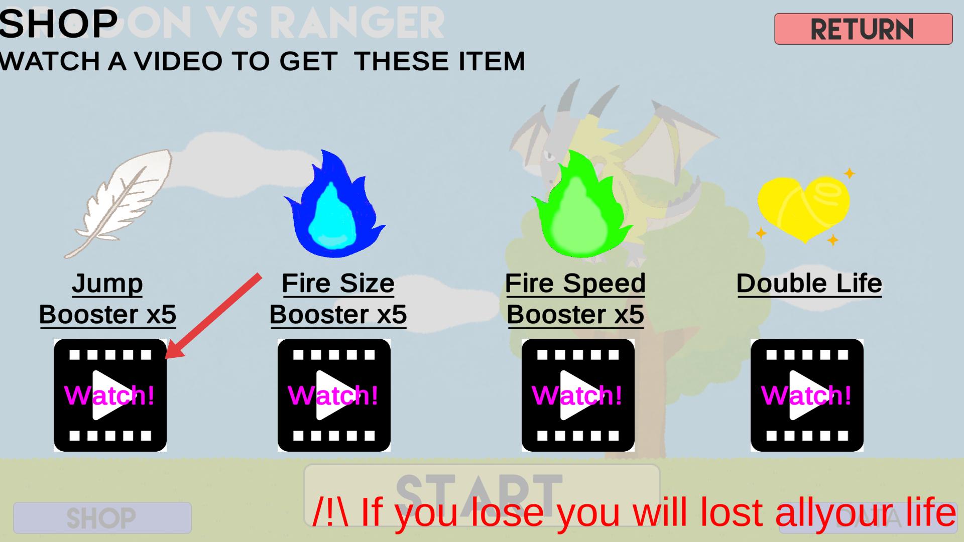 4、在商店界面,點擊Watch按鈕,觀看視頻就能獲取跳躍增益道具,助力后續(xù)游戲。