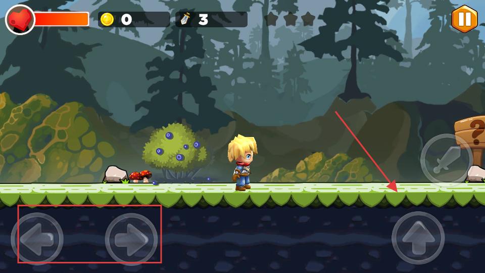 2、在游戲場(chǎng)景里屏幕下方有左右方向的箭頭按鈕,點(diǎn)擊它們可以控制角色左右移動(dòng),朝著目標(biāo)方向前進(jìn)。