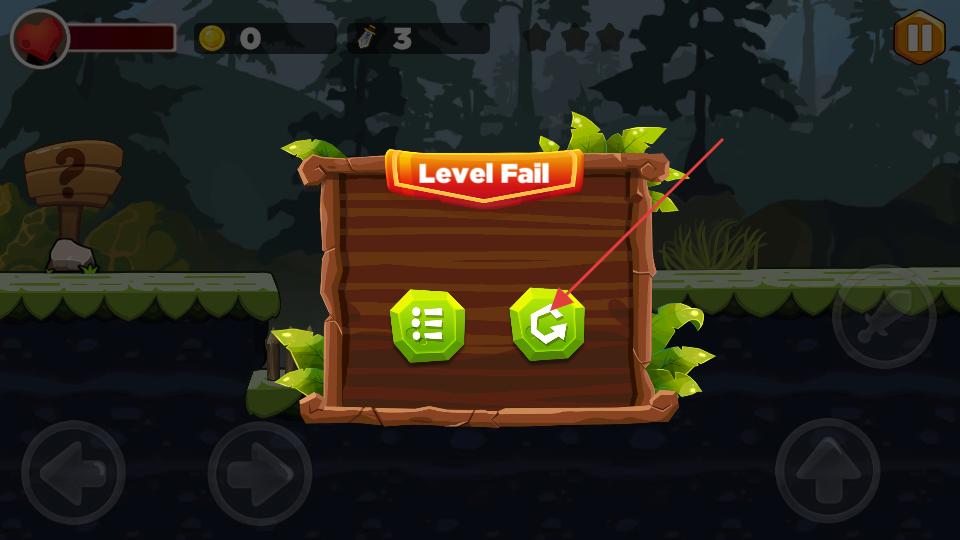 4、要是游戲失敗會(huì)彈出LevelFail的提示框,點(diǎn)擊帶有重新開始標(biāo)志的按鈕,就能重新挑戰(zhàn)當(dāng)前關(guān)卡。