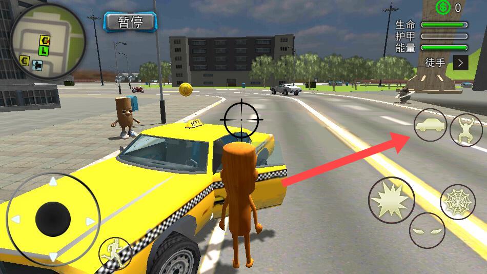 2、靠近出租車,點(diǎn)右側(cè)汽車圖標(biāo)按鍵上車,開展搭載等候的乘客任務(wù),推進(jìn)游戲。