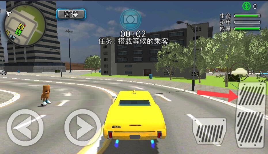 3、接搭載等候的乘客任務(wù),操控車輛,用方向鍵和右側(cè)加速鍵,前往接客點(diǎn)。