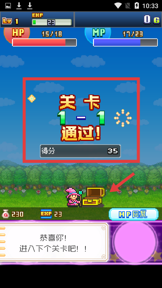 4、成功通過關(guān)卡后,會(huì)顯示關(guān)卡通過提示,還能獲得得分等獎(jiǎng)勵(lì),此時(shí)可打開寶箱獲取道具,然后準(zhǔn)備進(jìn)入下一個(gè)關(guān)卡繼續(xù)冒險(xiǎn)。