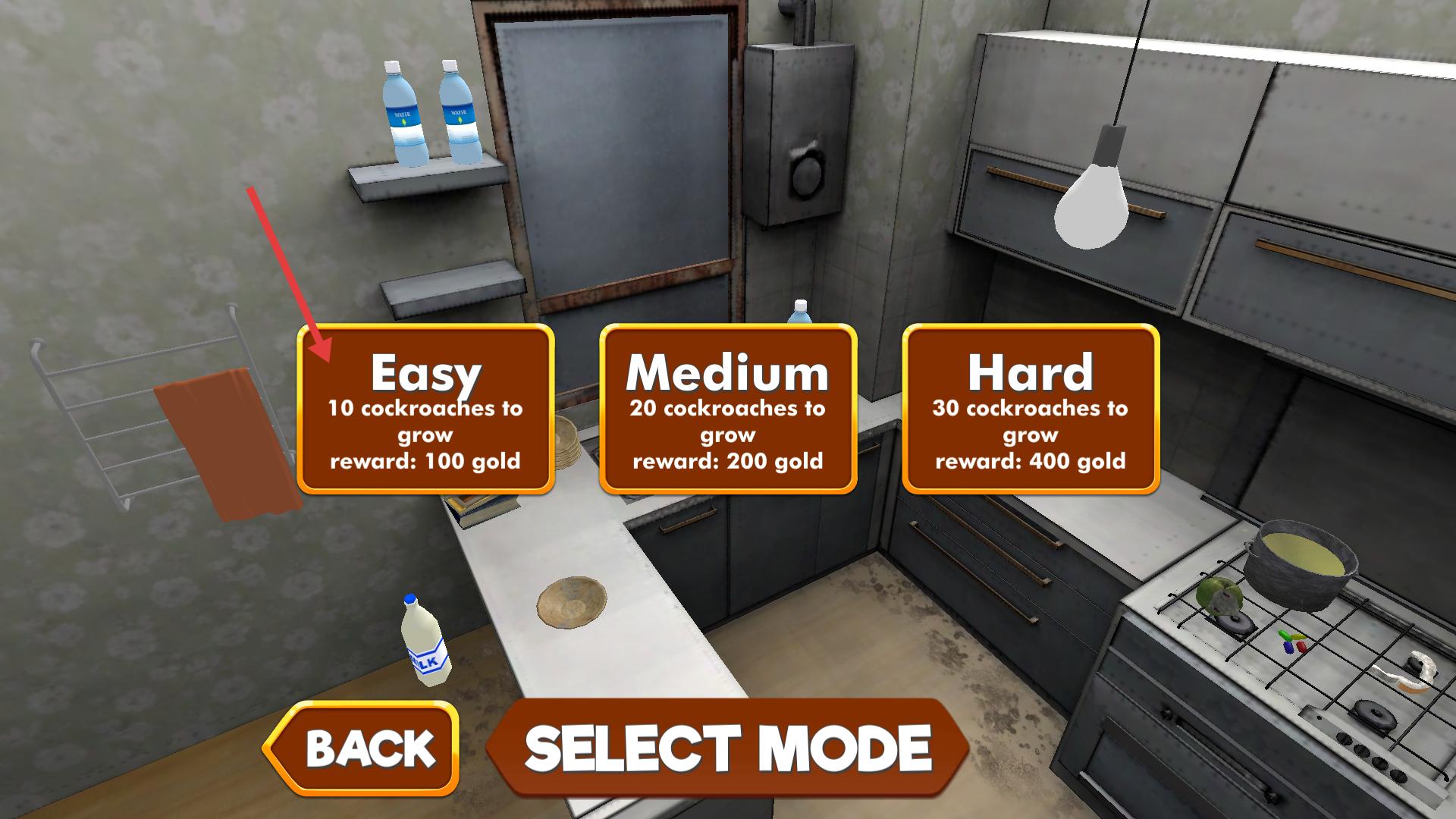 2、選擇Easy難度需培育10只蟑螂,獎(jiǎng)勵(lì)100金幣,適合新手,選好后點(diǎn)擊選擇模板進(jìn)入游戲。