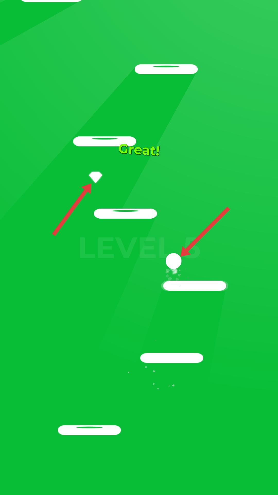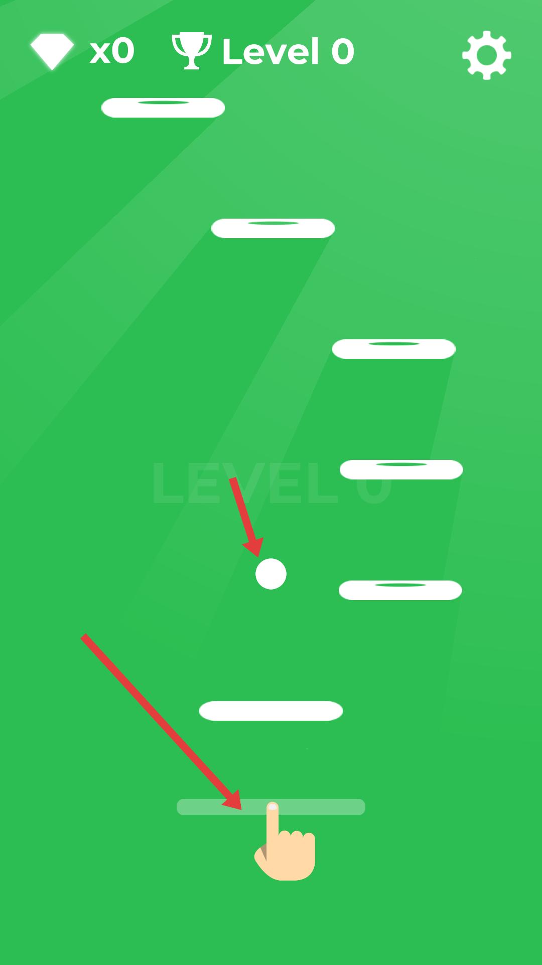 1、游戲開始需點擊屏幕,控制白色小球下落使其準確落在下方平臺上,這是開啟游戲的第一步操作。
