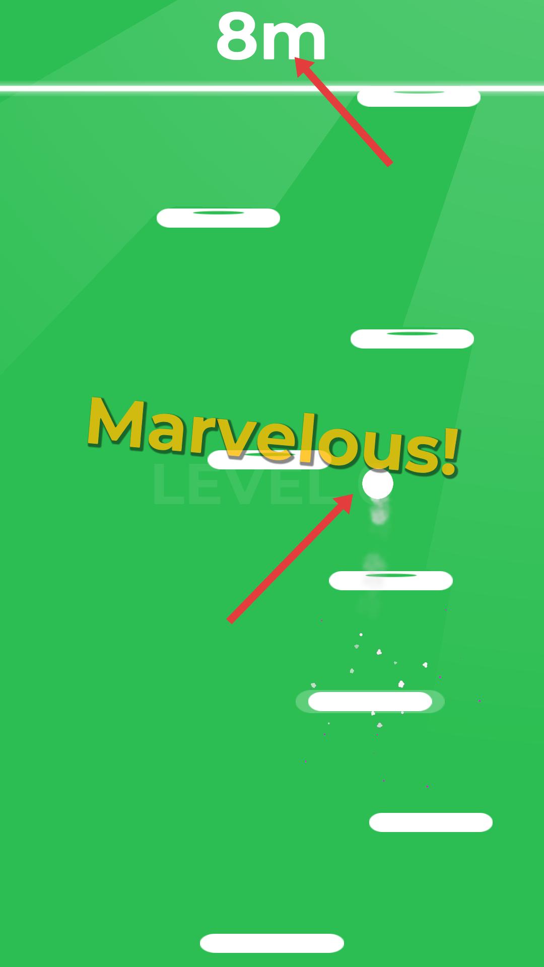 1、基礎(chǔ)反彈操作:通過單指點擊控制小球起跳時機,需預(yù)判降落點選擇最佳反彈角度,維持向上趨勢是關(guān)鍵。