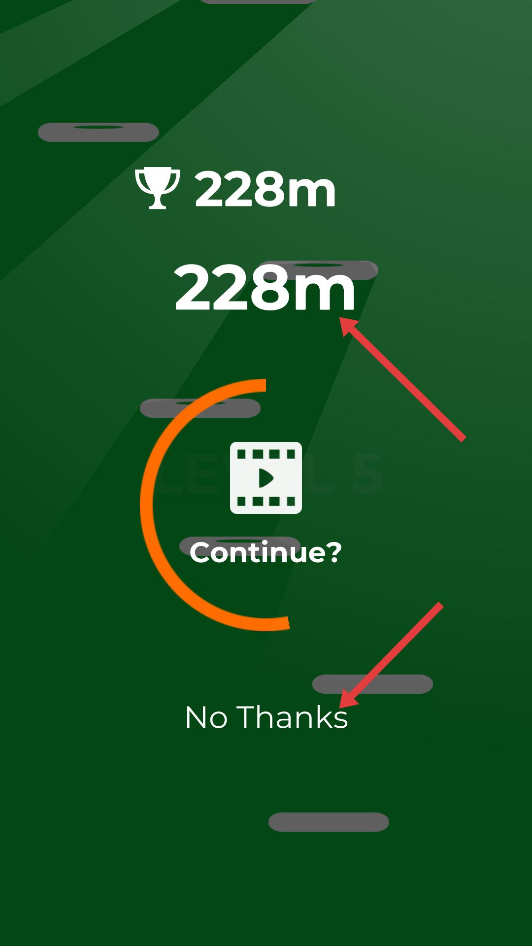 4、當游戲結(jié)束,界面顯示移動距離,若不想繼續(xù),可點擊箭頭所指按鈕,結(jié)束本輪游戲。
