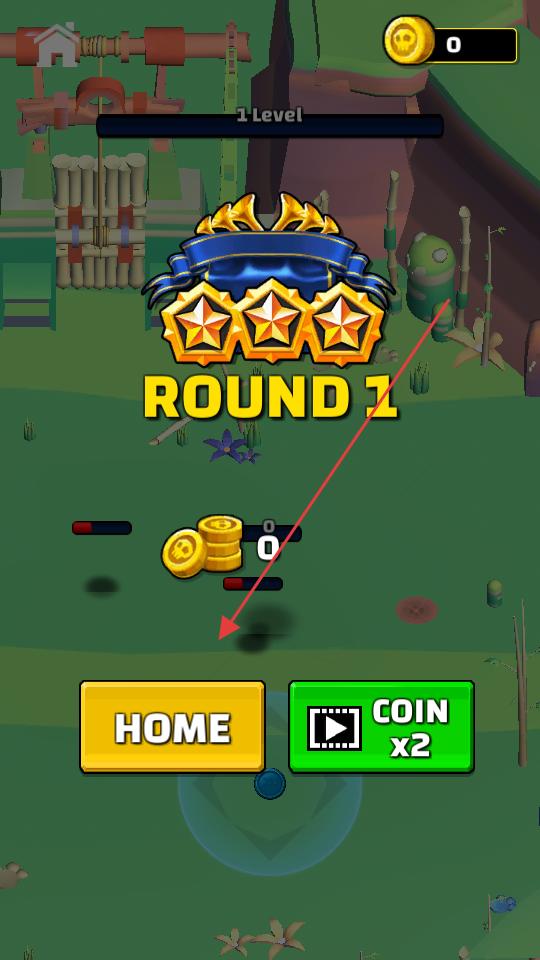 4、完成第一輪挑戰(zhàn)后,界面彈出帶有三星標識的結(jié)算框,此時可選擇點擊的HOME按鈕返回主頁,或點擊獲取雙倍金幣。