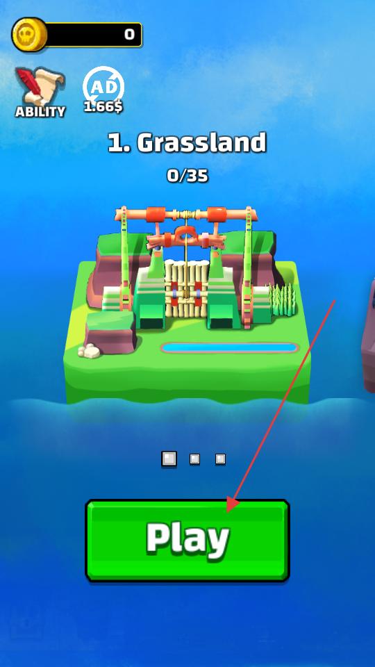 1、點擊的Play按鈕,進入草原主題的第一關(guān),此時界面顯示關(guān)卡目標進度,準備操控藍色核心,開啟冒險射擊的挑戰(zhàn)。