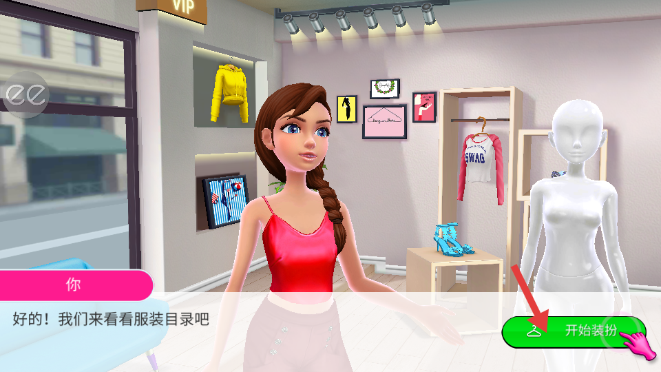 1、和角色對話后點擊開始裝扮按鈕,進(jìn)入服裝搭配環(huán)節(jié),可以開始為客戶挑選合適的服裝,即可開啟裝扮工作。