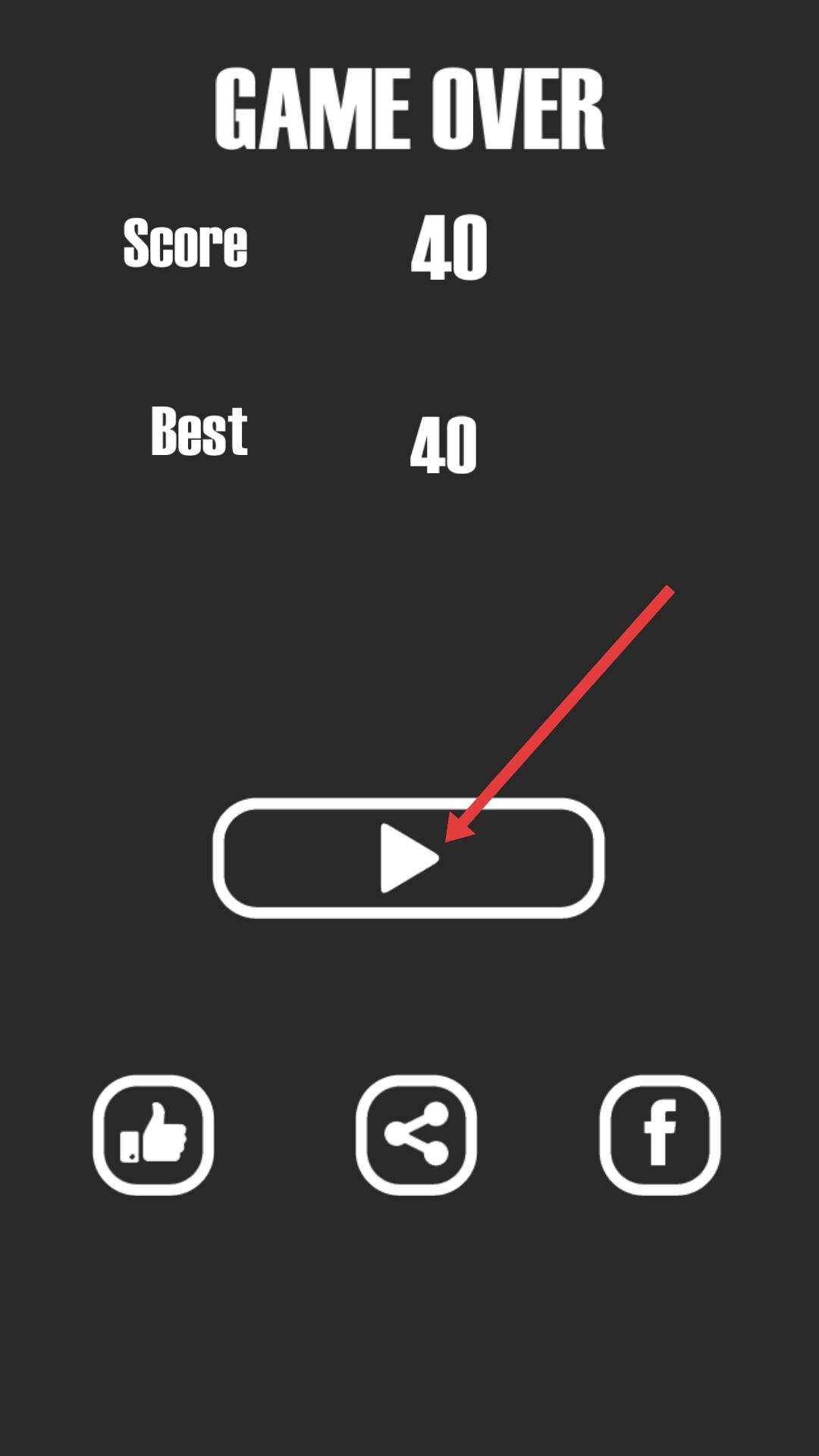 4、游戲結束后,會顯示得分和最佳成績,點擊帶有播放圖標的按鈕可重新開始游戲,再次挑戰(zhàn)。