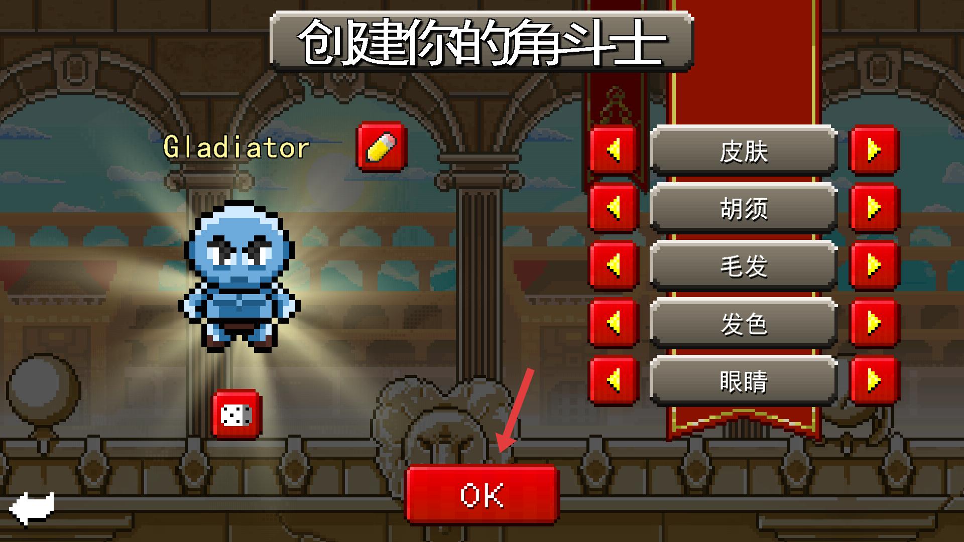 2、創(chuàng)建角斗士時,調(diào)整皮膚、胡須等外觀,或用骰子隨機生成,確認后點OK,定制專屬角色,進入戰(zhàn)斗。