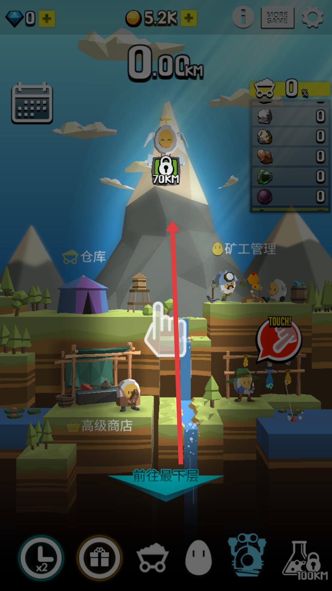 2、游戲中按照提示向上滑動,可操控角色等進(jìn)行移動,探索礦山不同區(qū)域,推進(jìn)游戲進(jìn)程。