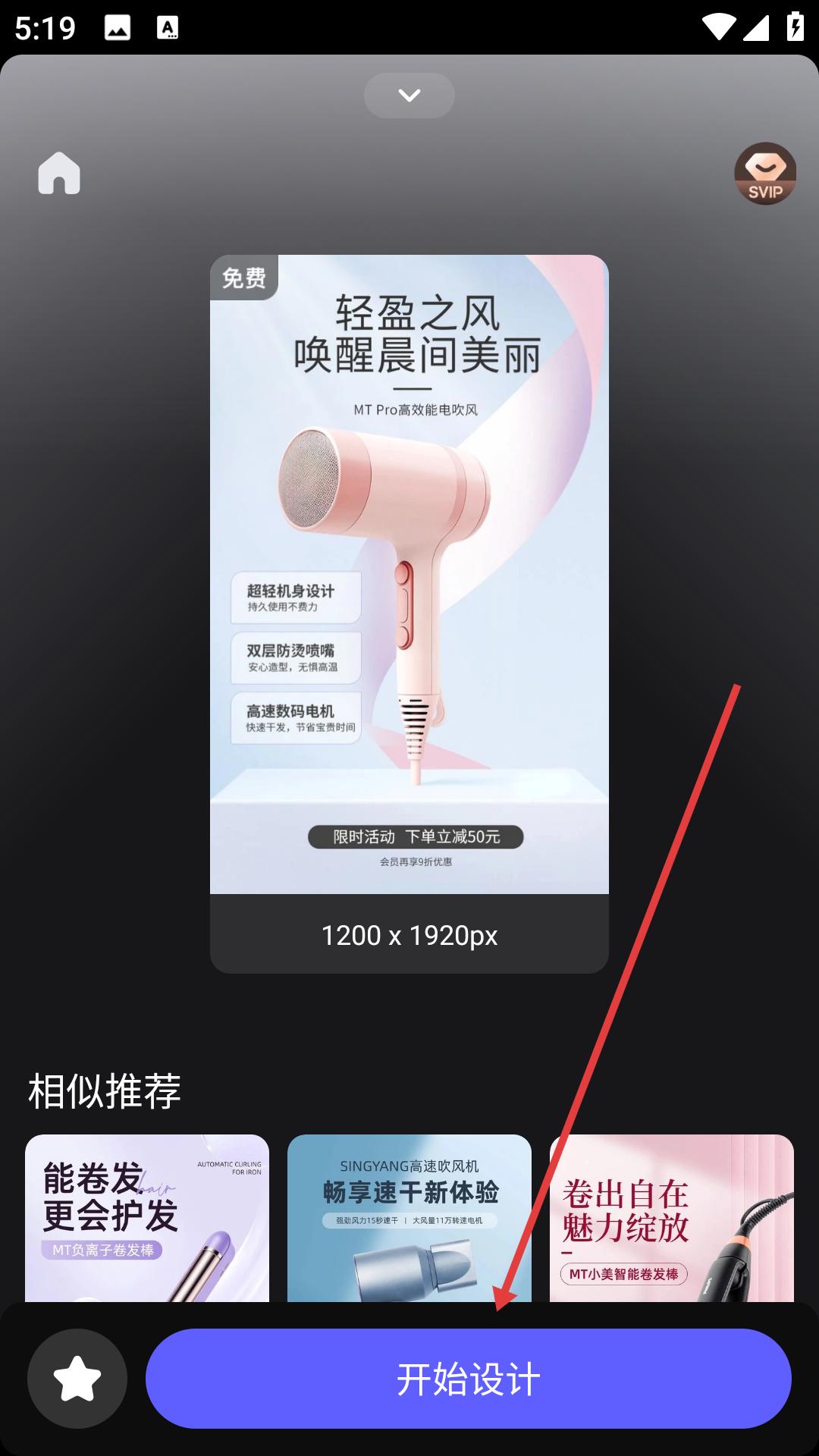 4、在模板詳情頁面,可查看模板尺寸等信息,下方還有相似推薦模板,若確定使用該模板,點擊開始設(shè)計,進(jìn)行后續(xù)創(chuàng)作。
