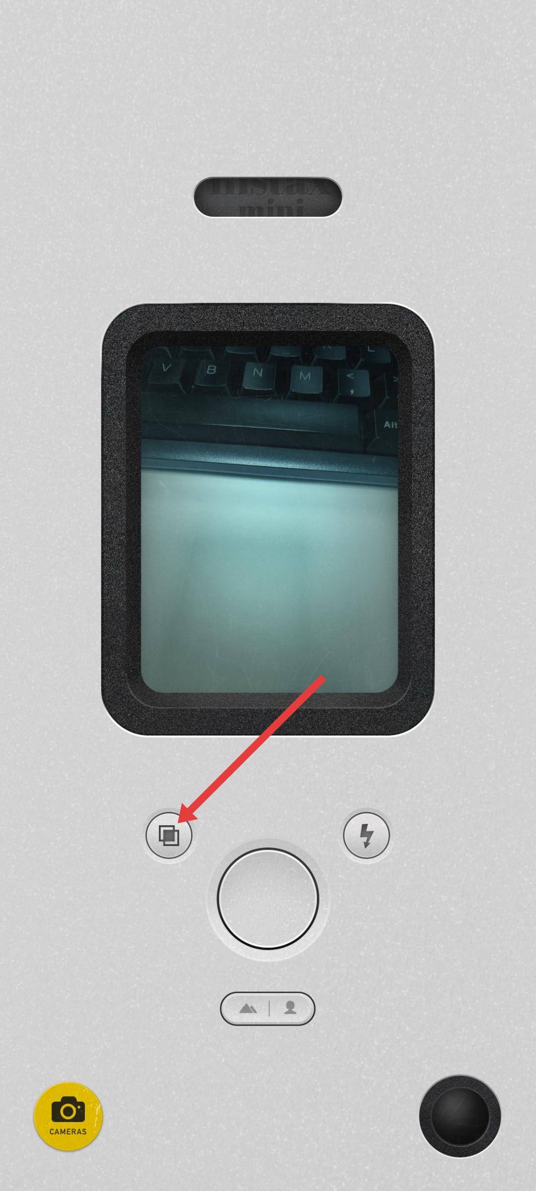 1、進(jìn)入應(yīng)用可看到模擬拍立得的界面,點(diǎn)擊左側(cè)帶有方框圖標(biāo)的按鈕,可進(jìn)行拍攝模式等相關(guān)設(shè)置。
