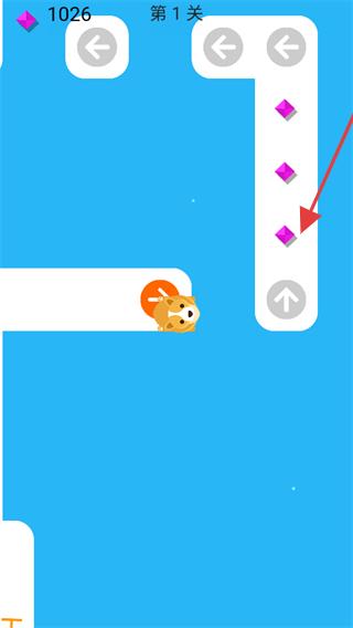 2、當(dāng)萌寵遇到帶有箭頭的轉(zhuǎn)向標(biāo)識時,在箭頭處觸屏操作,萌寵會按照箭頭方向轉(zhuǎn)向,繼續(xù)沿著路徑前行。