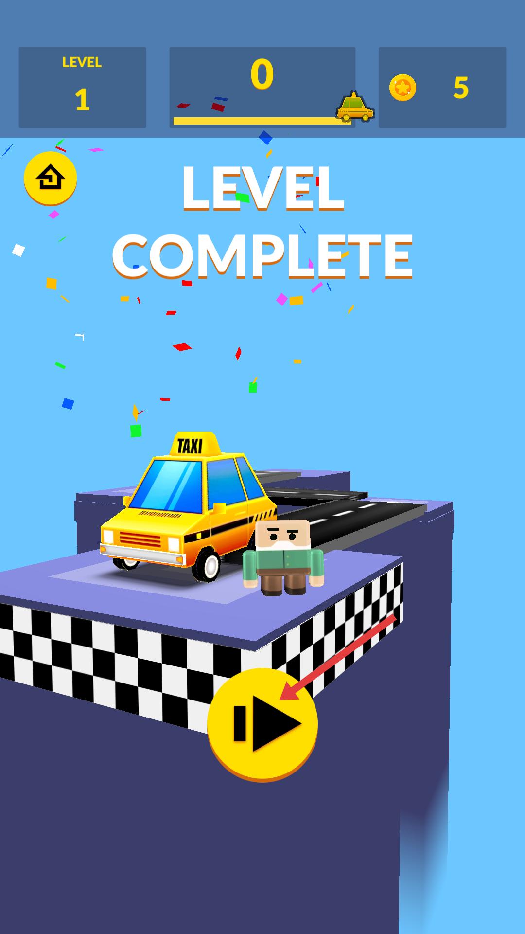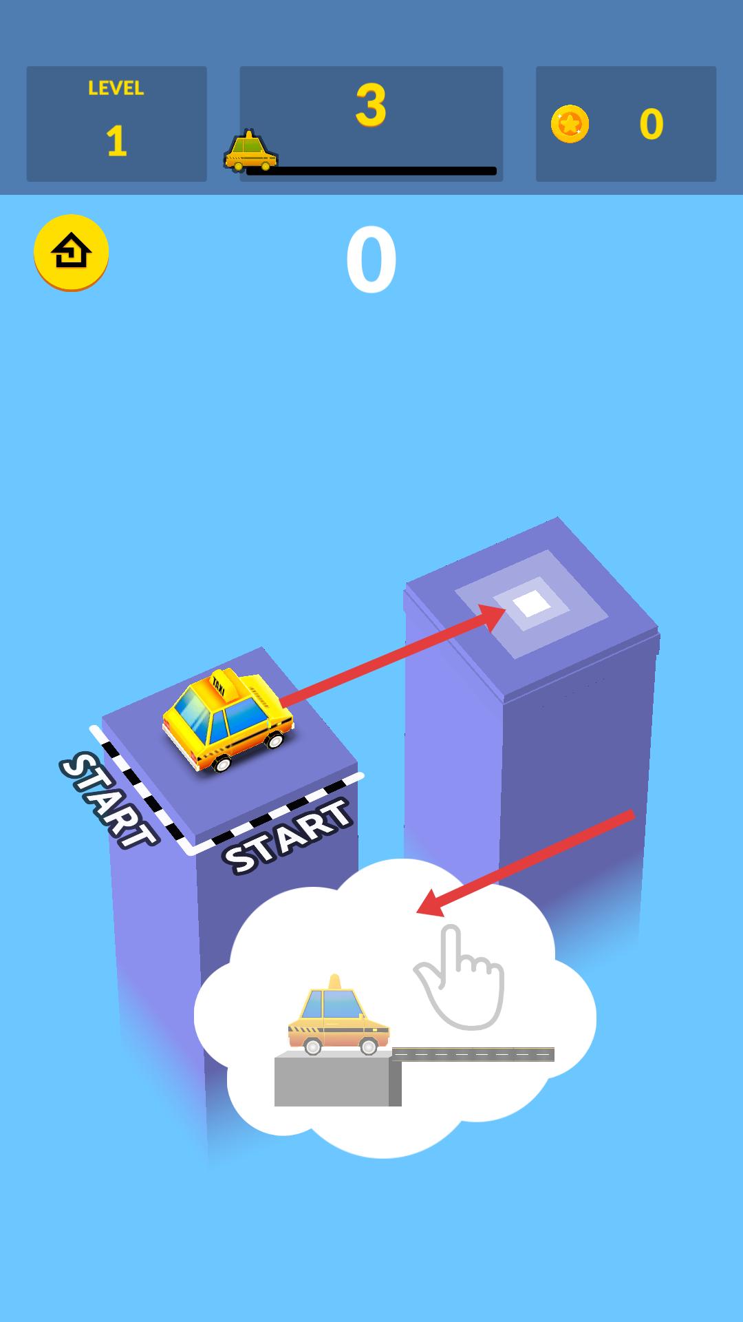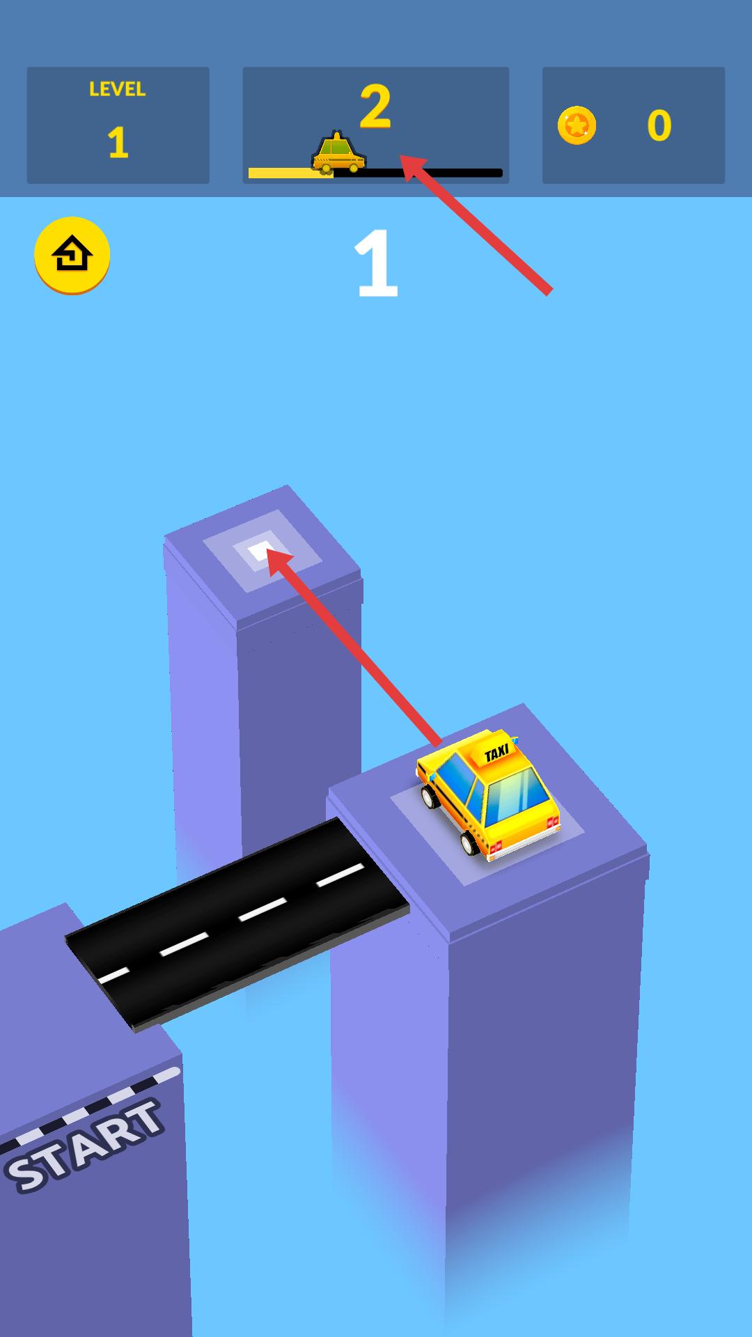 3、游戲過程中觀察出租車與目標平臺的距離,適時長按屏幕延伸道路,確保出租車順利行駛。