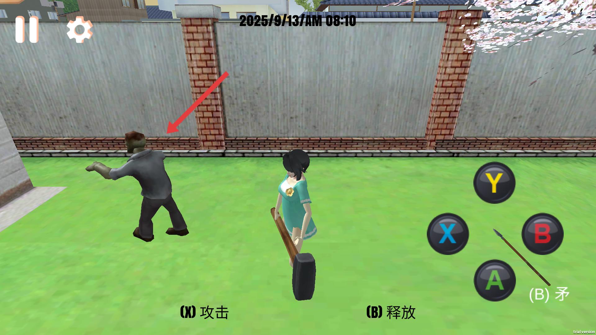 4、撿起錘子后,遇到僵尸,可按下攻擊按鍵,用錘子攻擊僵尸,若有其他武器,也能按下釋放按鍵切換,更好地應(yīng)對僵尸。