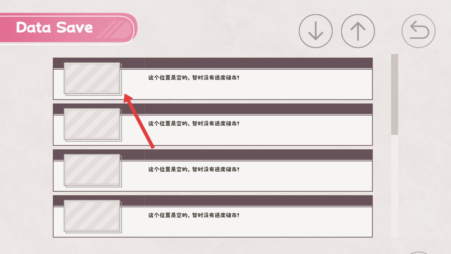 4、進(jìn)入存檔頁面,選擇空白存檔位置,存儲(chǔ)當(dāng)前進(jìn)度,確保游戲進(jìn)程可回溯,繼續(xù)探索故事。