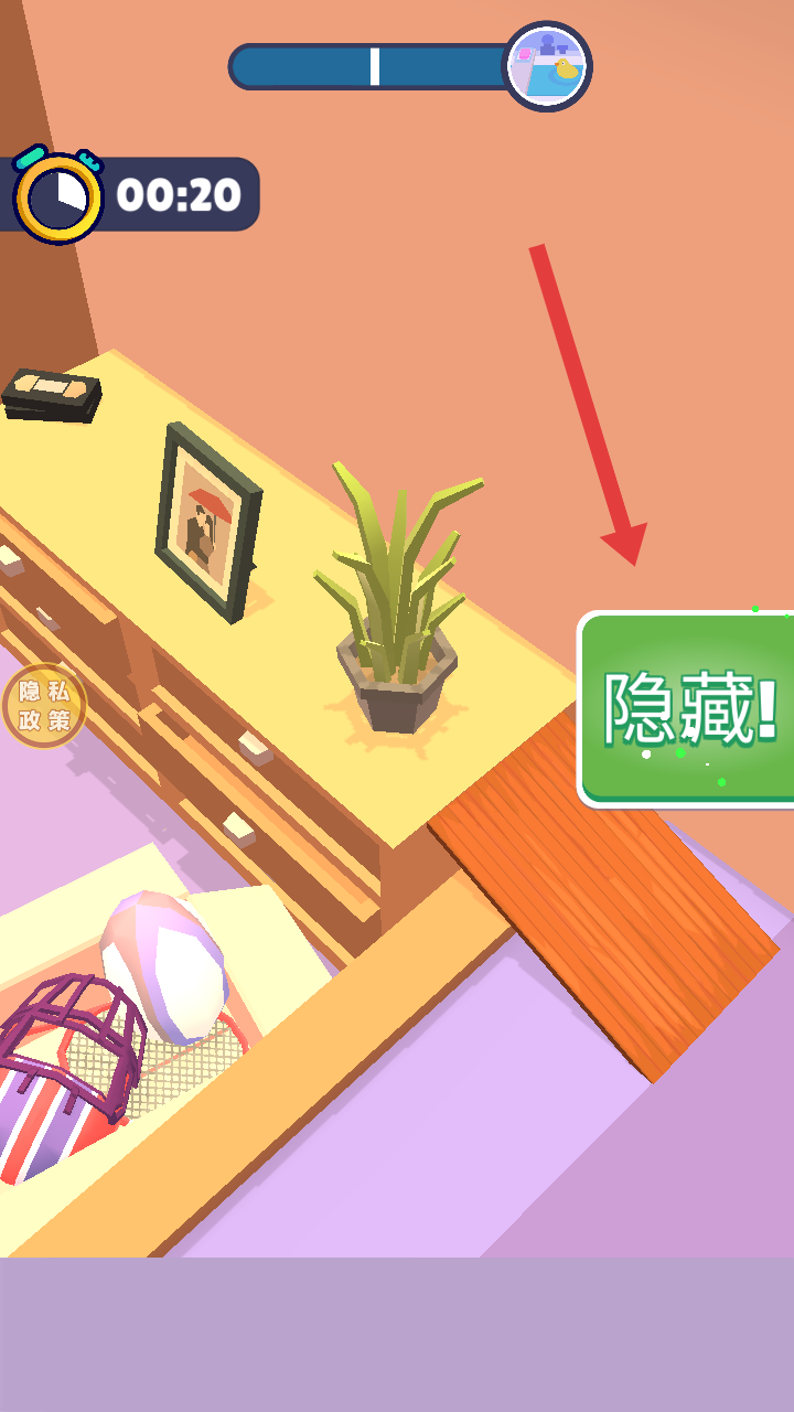 3、找到合適的隱藏位置后,點(diǎn)擊隱藏,讓自己融入環(huán)境,開始等待尋找者的搜索。