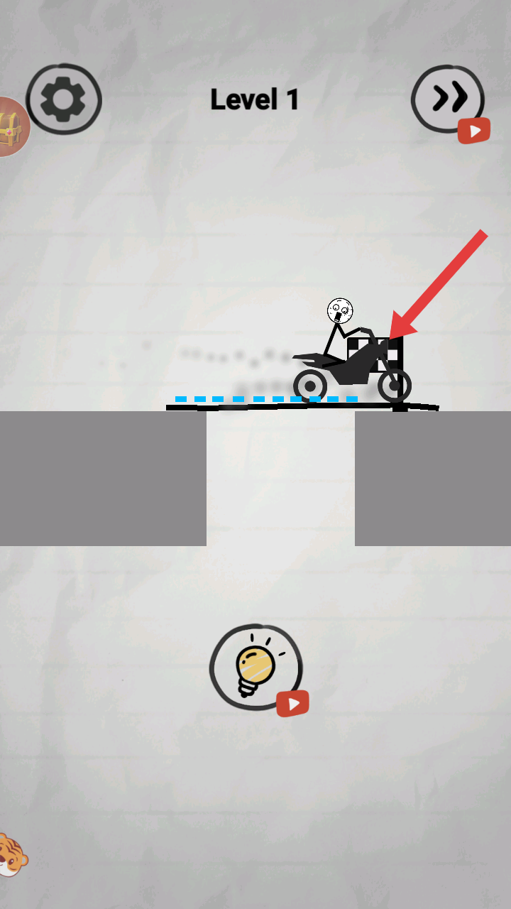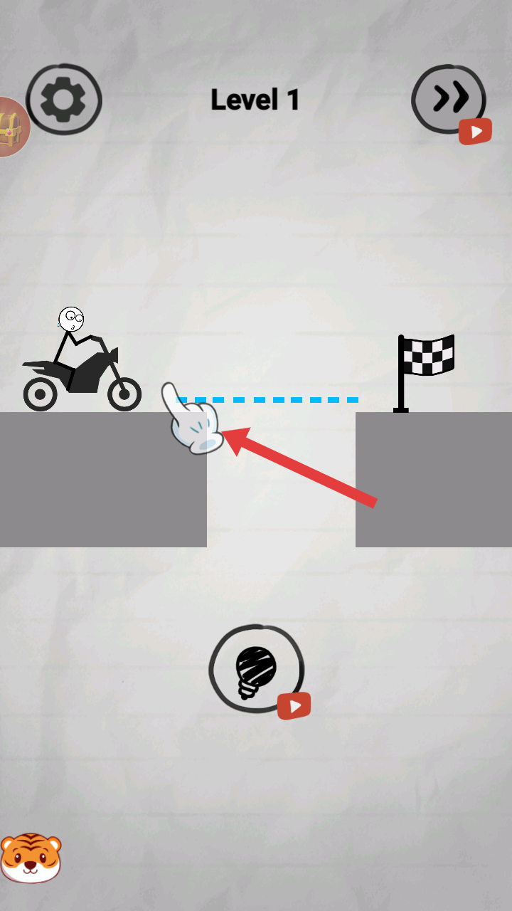 1、進(jìn)入游戲Level1,根據(jù)提示用手指畫(huà)出線條,搭建摩托行駛的路徑,連接起點(diǎn)和終點(diǎn)的旗幟處。