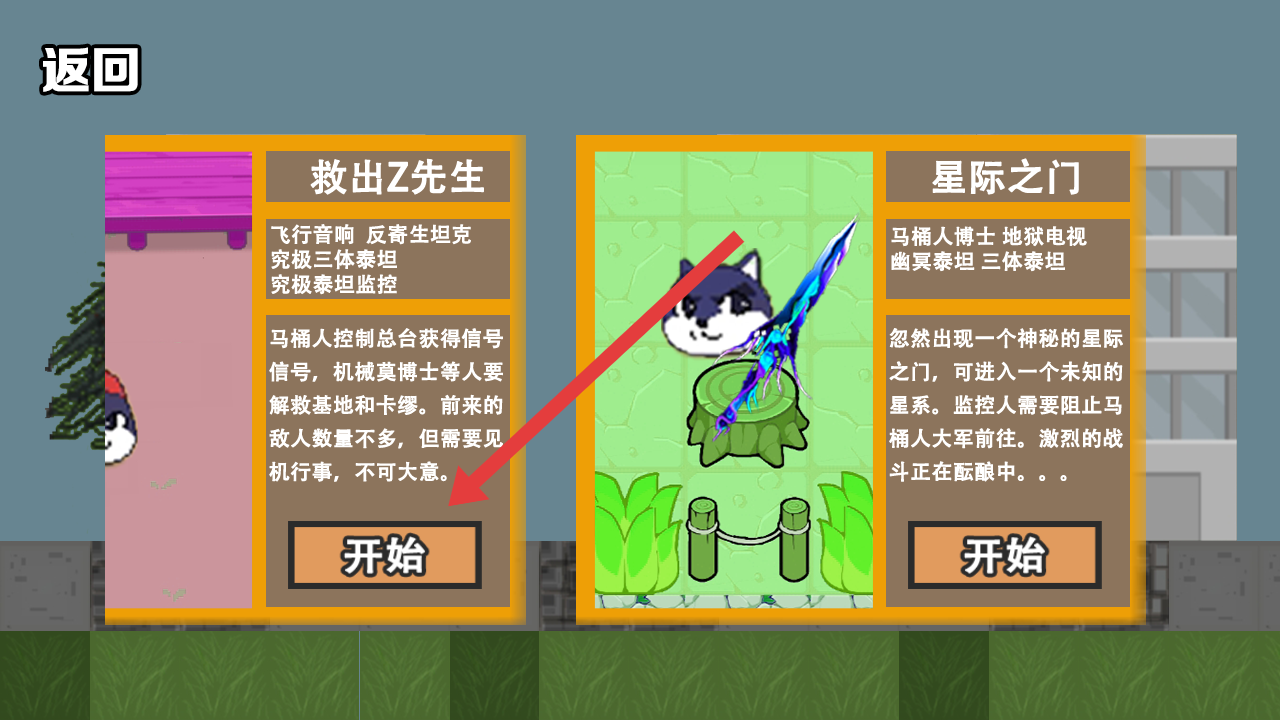 3、有救出Z先生、星際之門等不同任務(wù),每個任務(wù)都有相應(yīng)介紹,了解后點擊開始按鈕,就能開啟對應(yīng)任務(wù)挑戰(zhàn),應(yīng)對不同敵人。