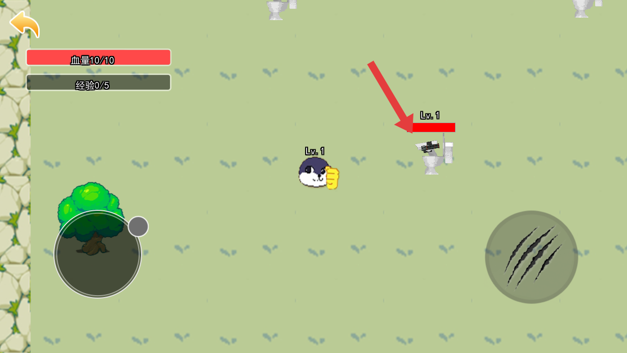 2、戰(zhàn)斗場景操控角色與馬桶人等敵人對抗,屏幕左側(cè)顯示血量和經(jīng)驗,右側(cè)有攻擊按鈕,點擊可發(fā)起攻擊,要留意自身狀態(tài)。