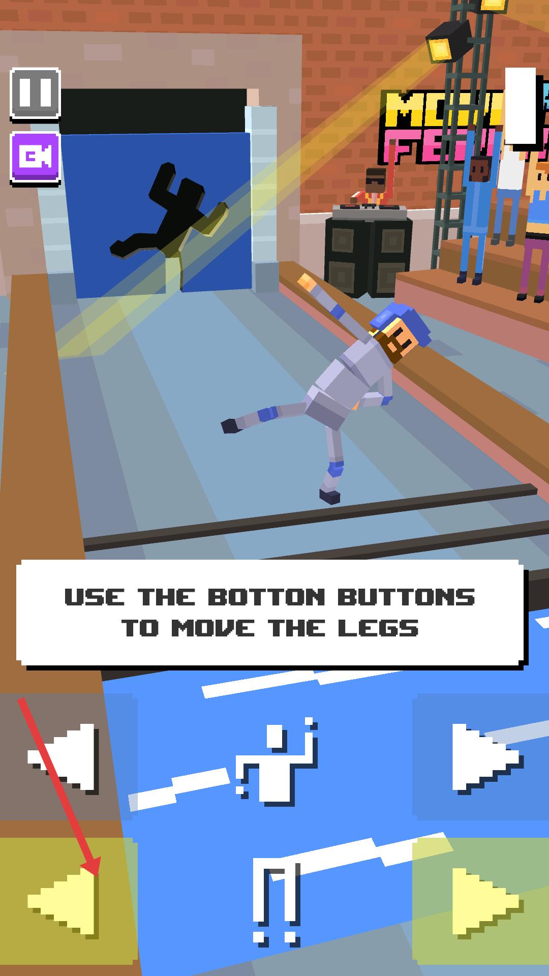 3、按照提示使用下方的按鈕來移動角色的腿部,協(xié)調(diào)好腿部動作,使角色的舞蹈動作更連貫、完整。