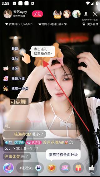 2、在直播列表中選擇感興趣的直播,如安藝ayay的直播,點(diǎn)擊進(jìn)入該直播間。