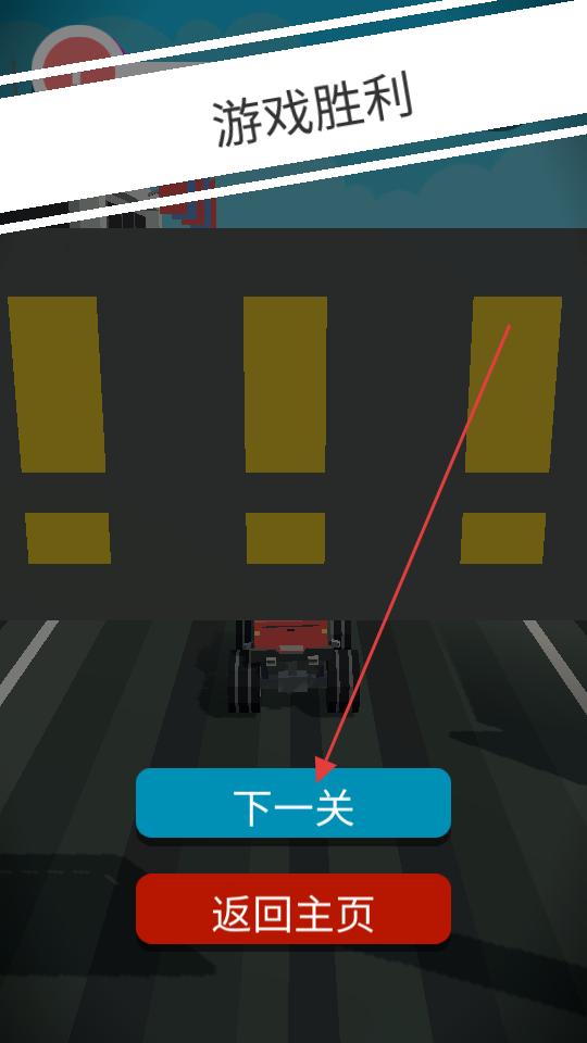 3、順利到達(dá)終點后界面顯示游戲勝利,點擊下一關(guān)按鈕,進(jìn)入新的賽道,此時注意新賽道的環(huán)境和障礙物分布,準(zhǔn)備開始新的競速。