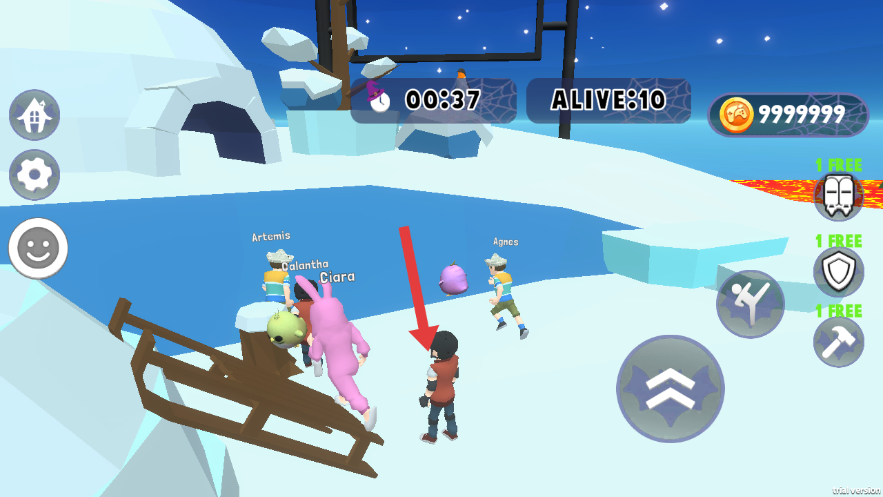2、創(chuàng)意陷阱道具:15種功能各異的道具隨機刷新,包括彈簧鞋、冰凍槍等。合理使用道具不僅能自保,還能主動制造障礙干擾對手的前進路線。