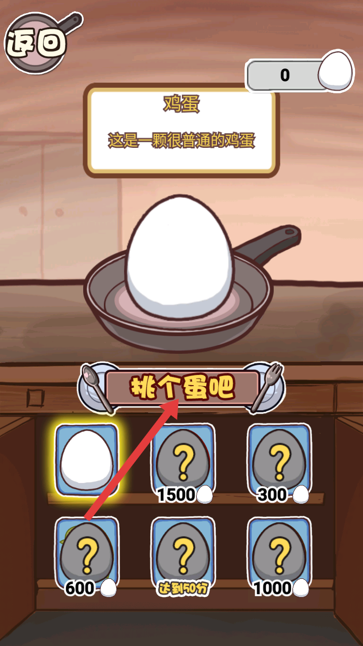 2、挑個蛋吧環(huán)節(jié),可選擇不同類型的雞蛋,比如初始的普通雞蛋,或用相應(yīng)雞蛋數(shù)量解鎖帶問號的特殊雞蛋。