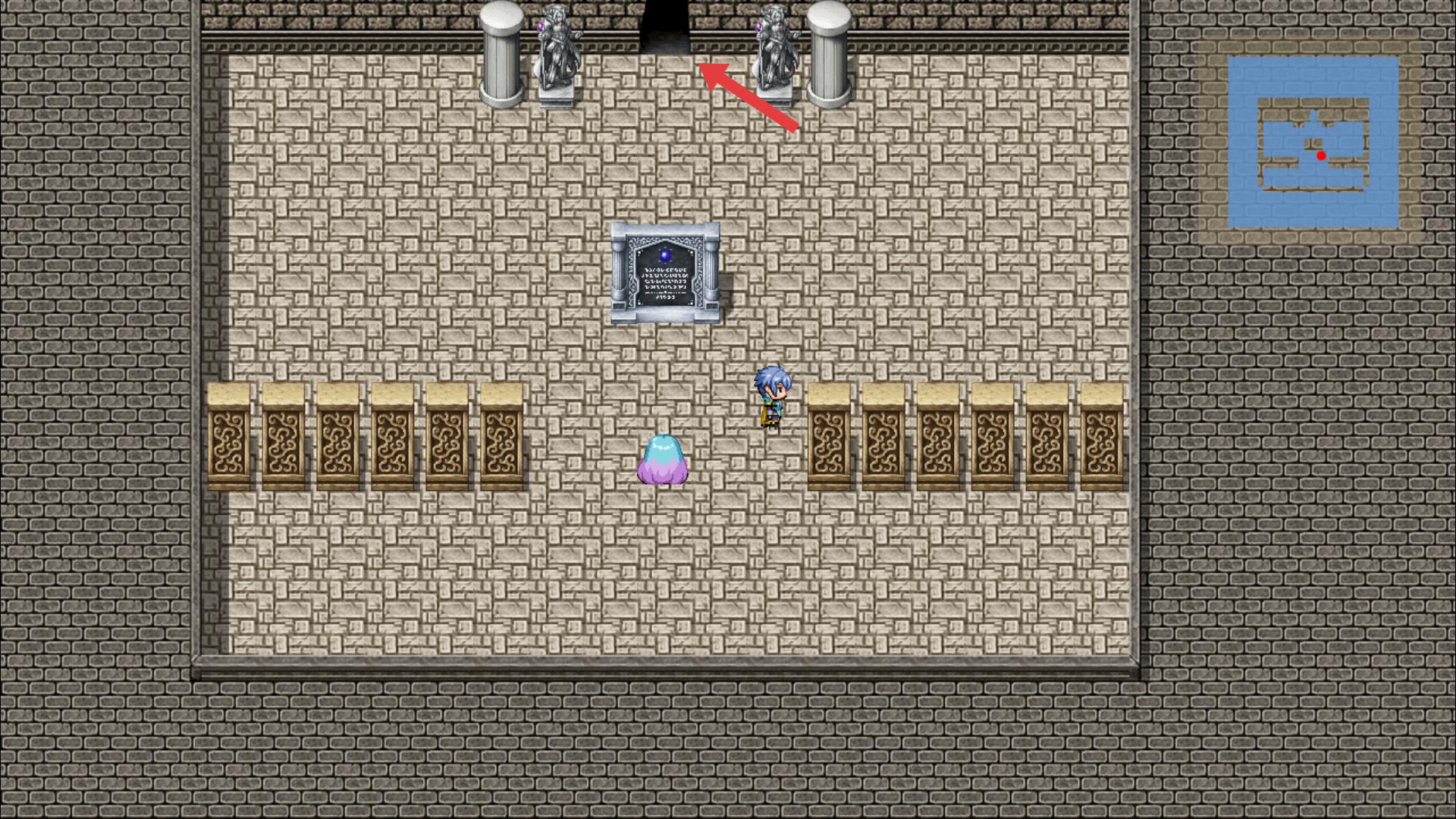 2、在石質(zhì)場景,操控角色向箭頭指向的石門移動,留意沿途物品,通過石門進入新區(qū)域,推進主線劇情。