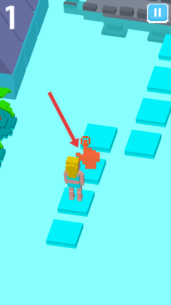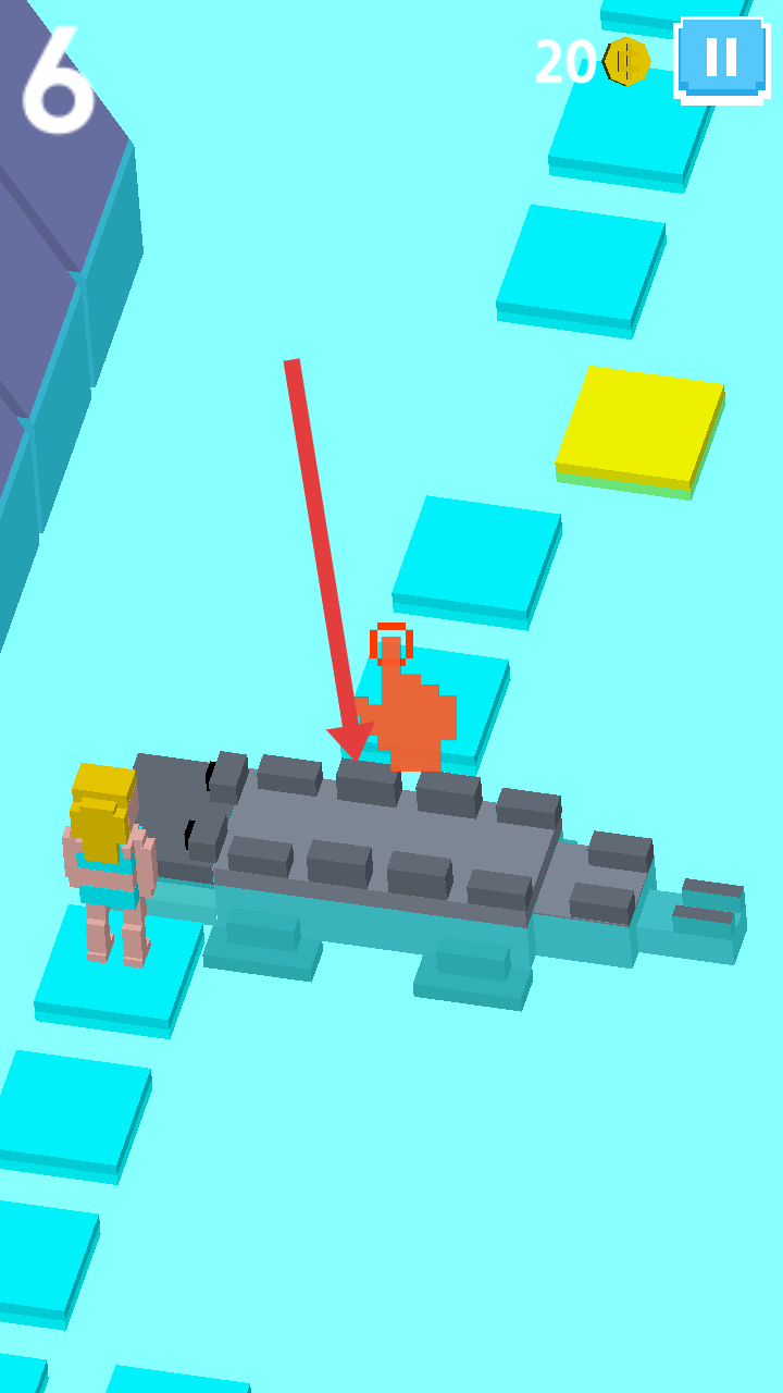 2、移動過程中,要引導角色踏上合適的方塊,還會遇到類似鱷魚形狀的障礙結構,需巧妙通過。