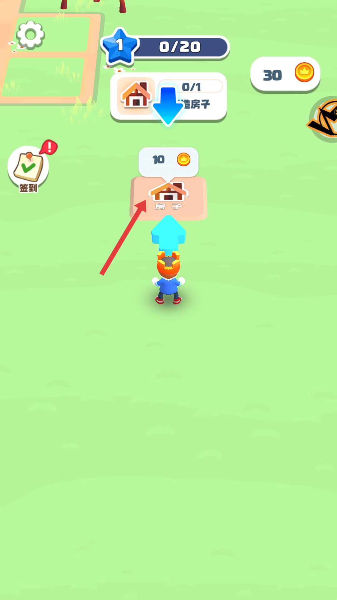 2、界面顯示需建造房子,花費10金幣點擊房子按鈕,即可開始建造,完成后能推進游戲進度,還可解鎖新功能。