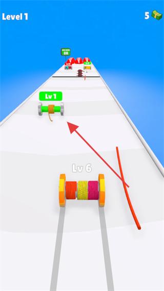 2、在跑酷過程中操控線軸收集跑道上的物品,同時注意避開障礙物,不斷前行,提升線軸的等級,增強線軸的能力。