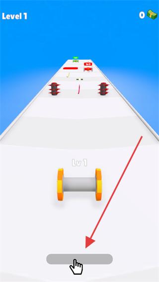 1、進入游戲看到帶有線軸和關(guān)卡標識的界面,點擊下方操作區(qū)域,操控線軸在跑道上移動,開始跑酷之旅。