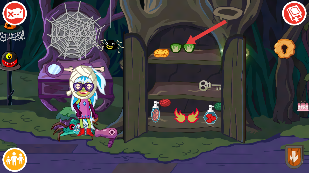 4、場景里有存放道具的柜子,打開柜子可獲取眼鏡等道具,給角色佩戴道具,能增添冒險的趣味性。