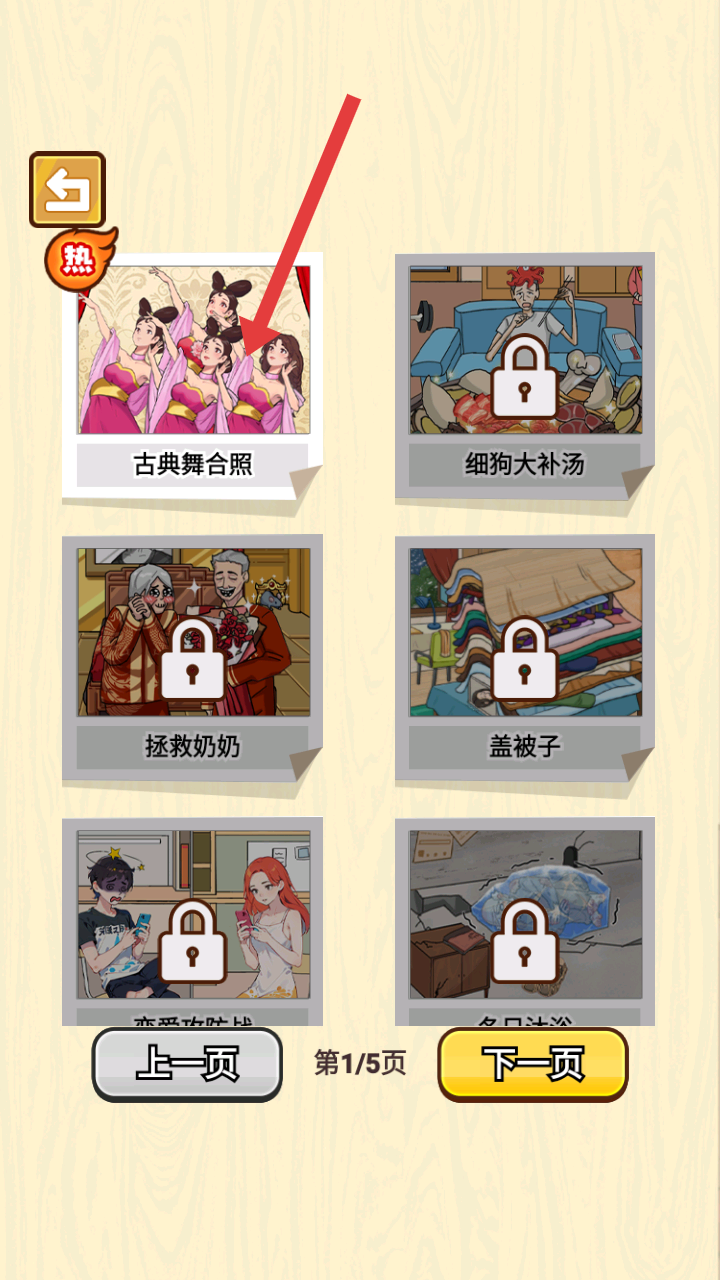 1、游戲有多個(gè)關(guān)卡,如古典舞合照等,點(diǎn)擊關(guān)卡圖標(biāo)可進(jìn)入對(duì)應(yīng)關(guān)卡,部分關(guān)卡需達(dá)成條件解鎖。