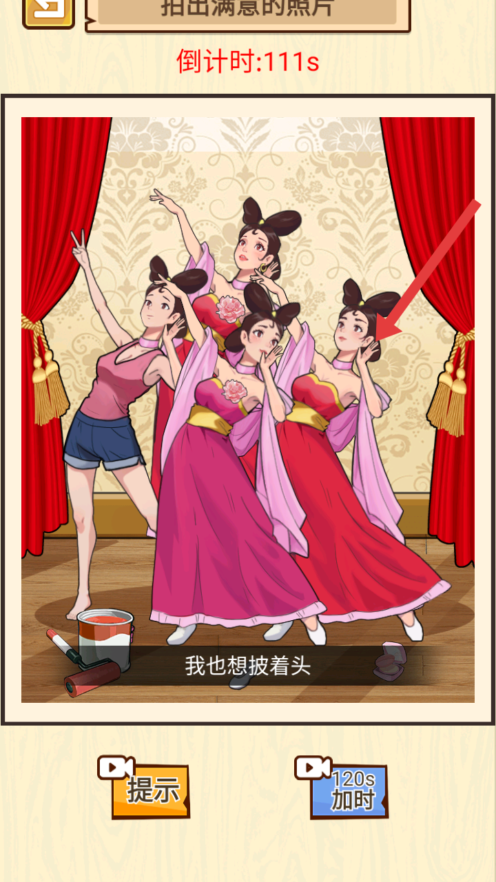 2、進(jìn)入關(guān)卡后,需規(guī)定倒計(jì)時(shí)內(nèi)完成任務(wù),像古典舞合照關(guān)卡要讓畫面符合要求,可點(diǎn)擊畫面元素進(jìn)行操作。