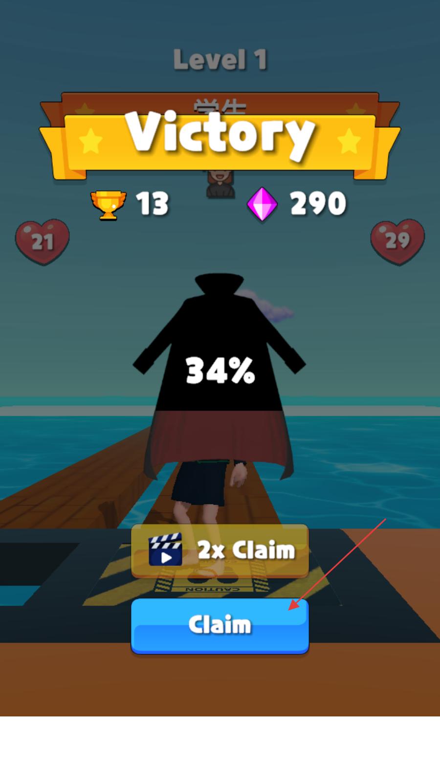 4、順利完成關(guān)卡挑戰(zhàn)后,界面顯示Victory代表勝利,此時點(diǎn)擊Claim按鈕,領(lǐng)取相應(yīng)獎勵。