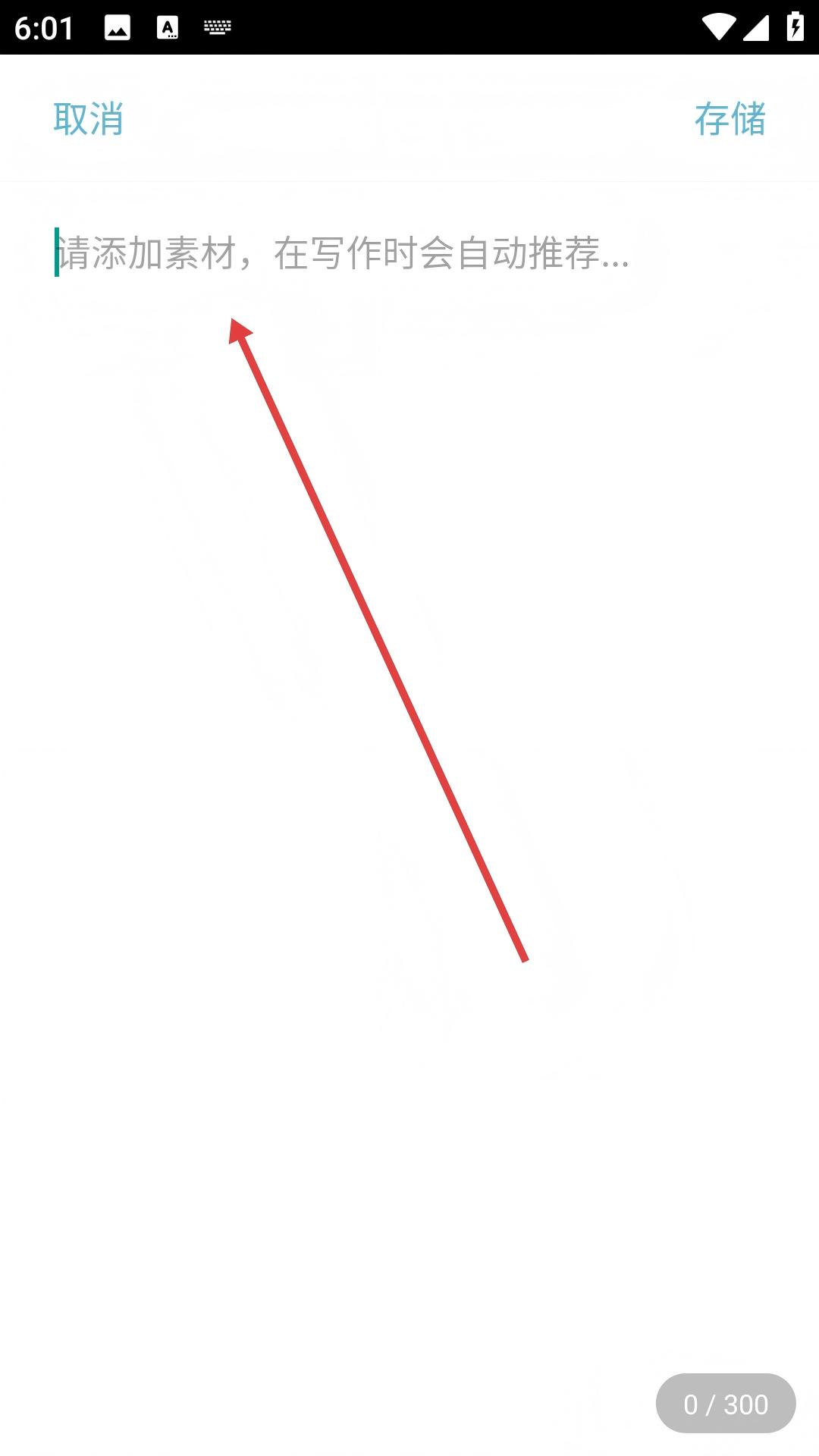 4、添加素材時,在輸入框中填寫素材內(nèi)容,這些素材在寫作時會自動推薦,輸入完成后點(diǎn)擊存儲即可保存,素材長度最多300字。