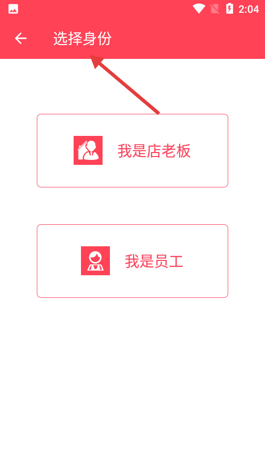 2、點擊身份選擇頁,明確我是店老板和我是員工選項,助力用戶精準定位角色,開啟個性化美業(yè)服務體驗。