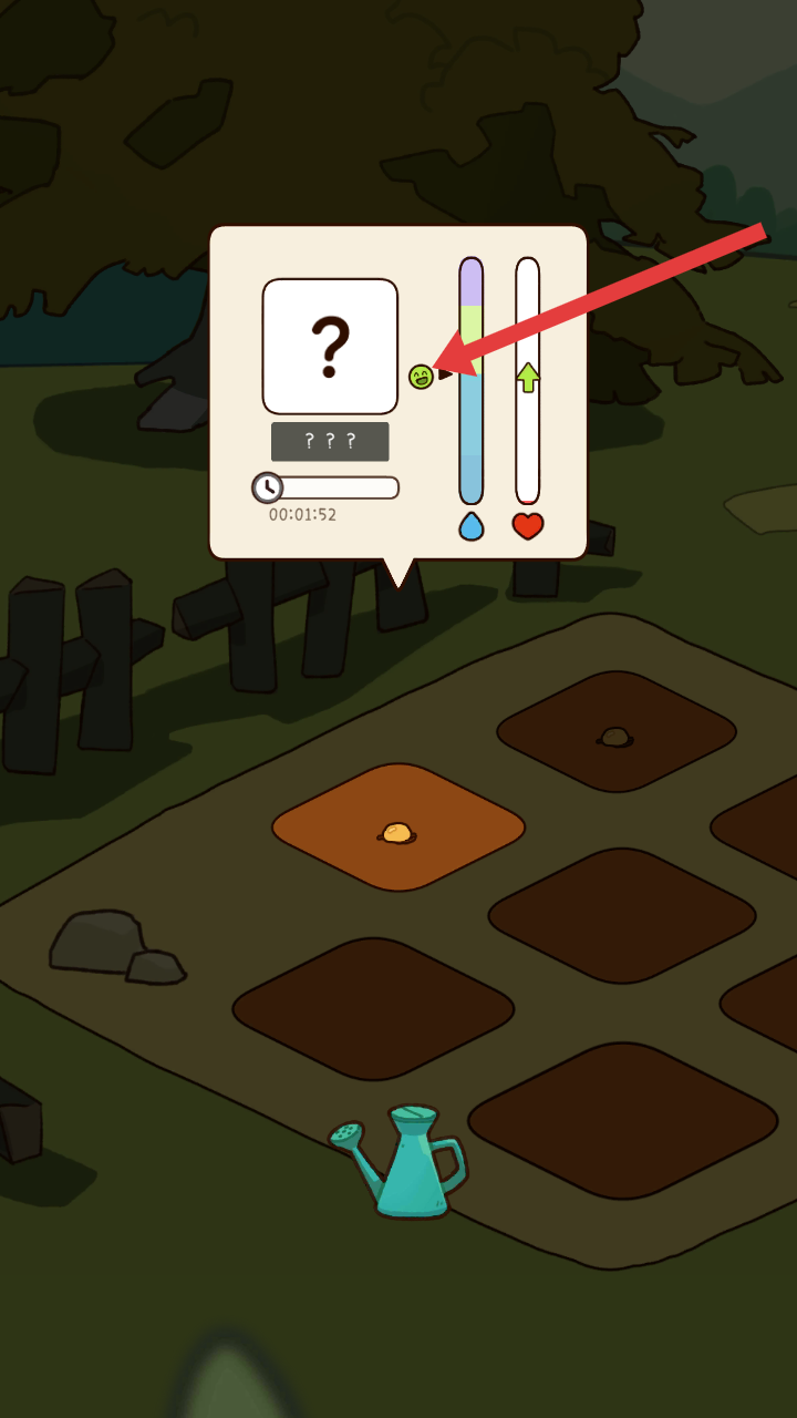 2、將種子種到土地后,會出現(xiàn)顯示生長狀態(tài)的面板,能看到水分、愛心等指標(biāo),需關(guān)注這些指標(biāo)來照料作物。
