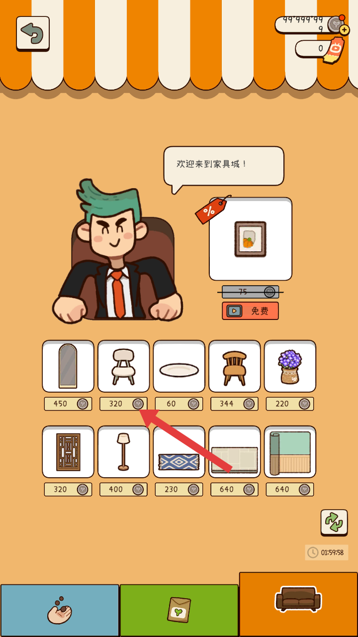 4、積累足夠硬幣后,還能進(jìn)入家具城,這里有各種家具,可挑選喜歡的家具,用硬幣購買來裝飾農(nóng)場。