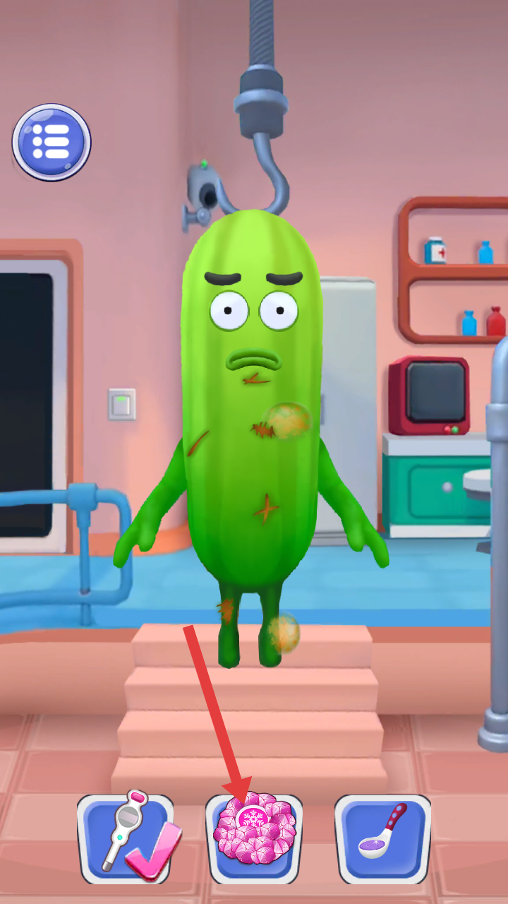3、接著可使用像粉色冰晶狀的道具,對水果患者身上的傷口等進(jìn)行處理,幫助緩解其不適癥狀。