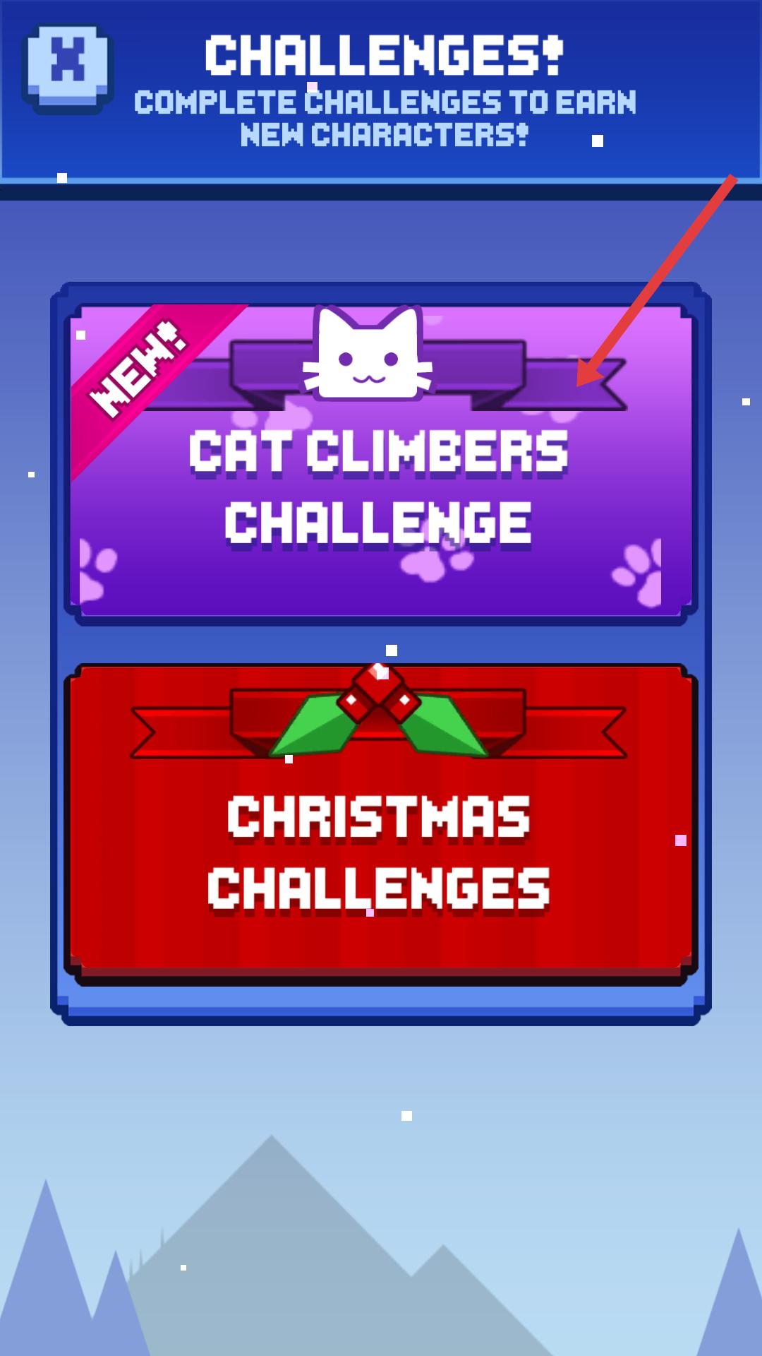 2、進入挑戰(zhàn)選擇界面,有爬山挑戰(zhàn)和圣誕節(jié)挑戰(zhàn)等挑戰(zhàn),完成挑戰(zhàn)能獲取新角色,可根據(jù)喜好選擇挑戰(zhàn)。