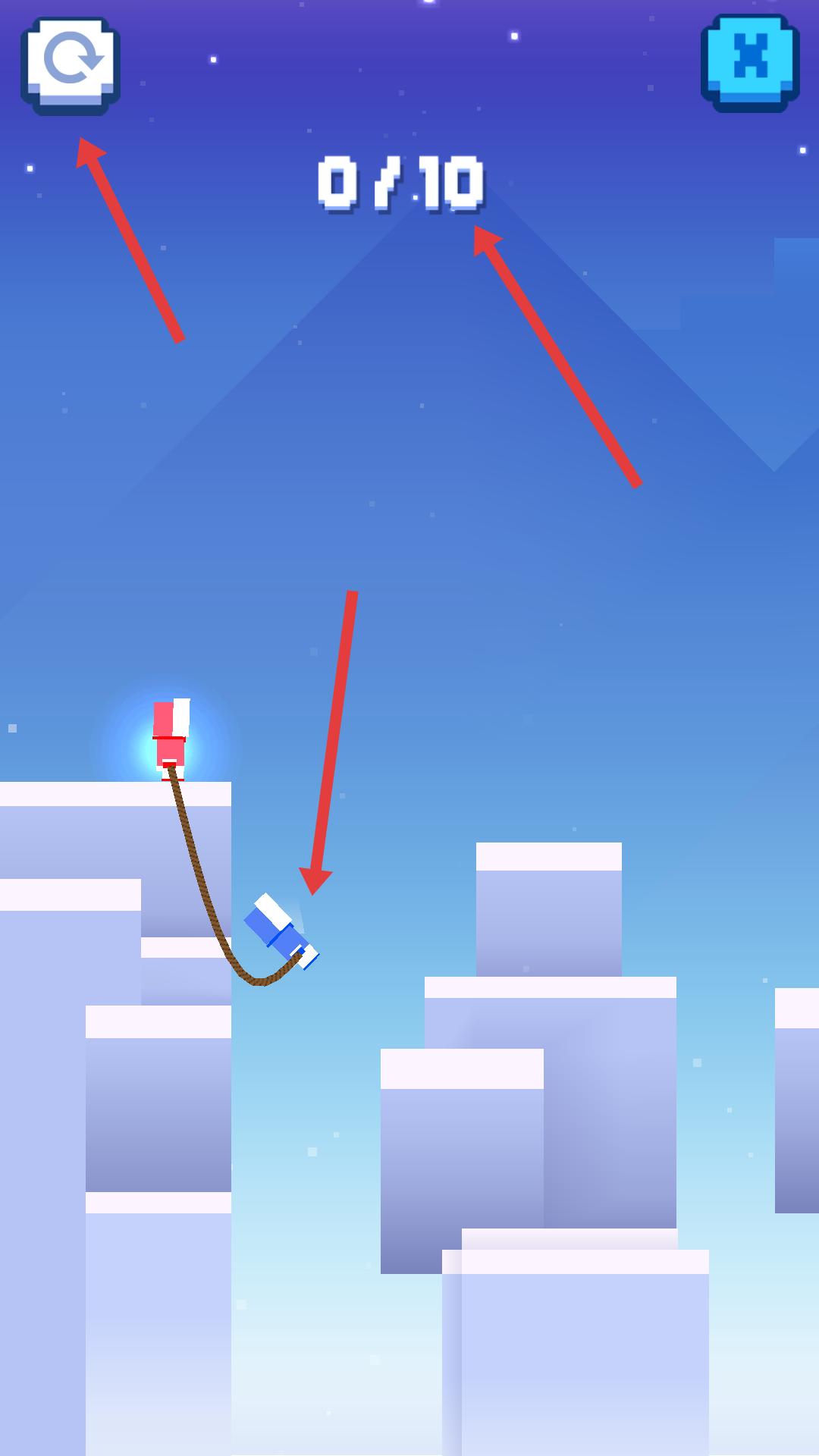 1、基礎(chǔ)跳躍技巧:輕觸屏幕積蓄基礎(chǔ)彈力,長按增加跳躍力度。注意觀察繩索繃直程度判斷最佳松手時機,跳躍過程中可通過二次觸控微調(diào)空中姿態(tài)。